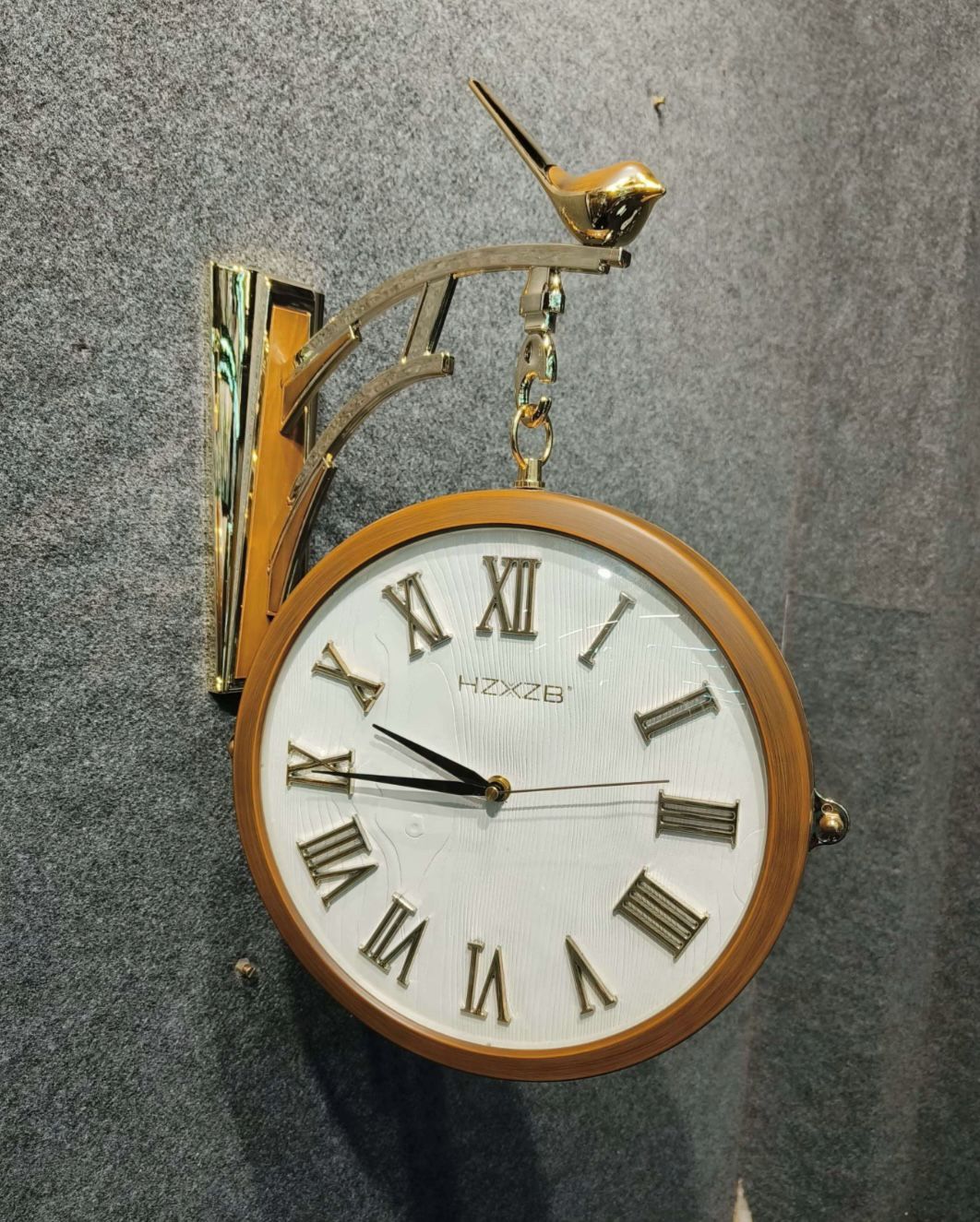 Dual Dial Metal Hanging Wall Clock [ Brown & White]