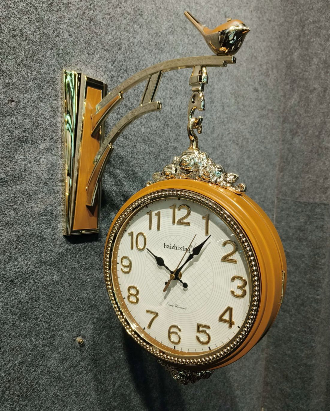 【 Double Sided Wall Clock】- The wall-mounted clock with a 360-degree rotation design, double faces can be visible, very convenient for you to watch the time. HD glass clock face, the Roman numerals can be seen clearly.