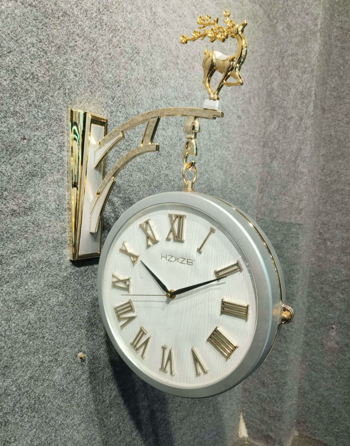 Dual Dial Metal Hanging Wall Clock [ Grey & White]