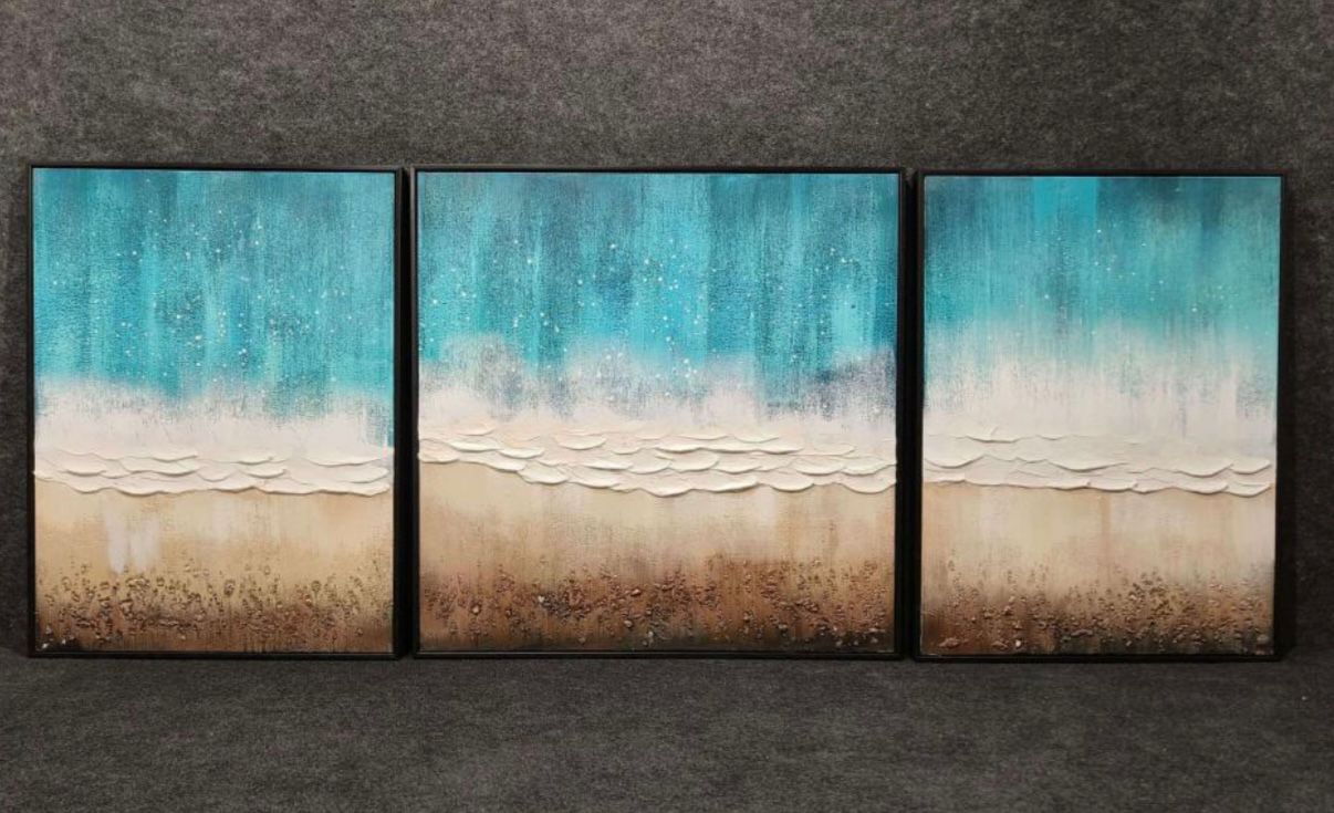 All our paintings in the hand-painted section are handmade using acrylic paint by our artists. The acrylic paint is also used to give the paintings a great texture which you can feel and touch with your hands.