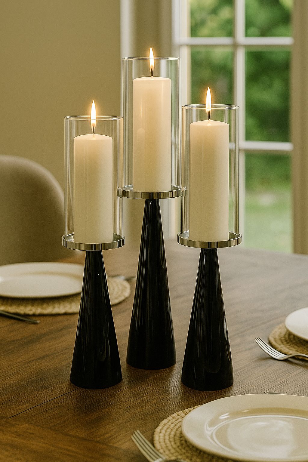 Metal Candle Holder With Crystal Base Pack of 3 Black