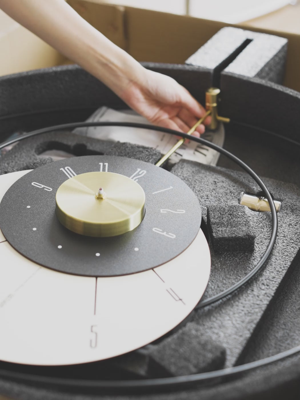 Material: Imported Walnut Wood Hands, Forescolor Ecoboard (High Density Eco-Fibreboard), Metal
