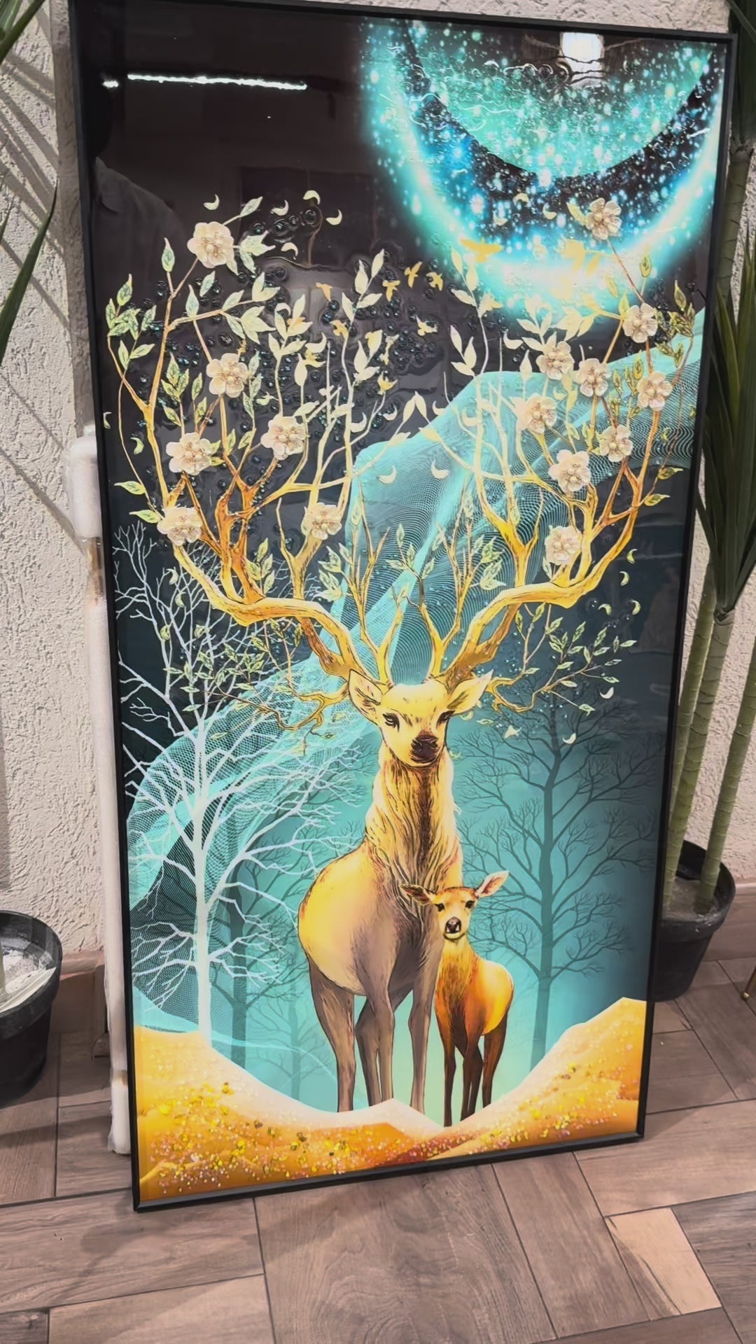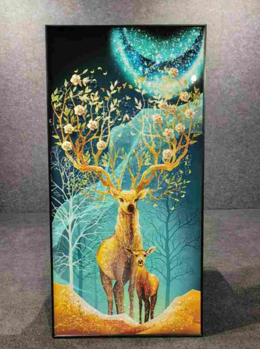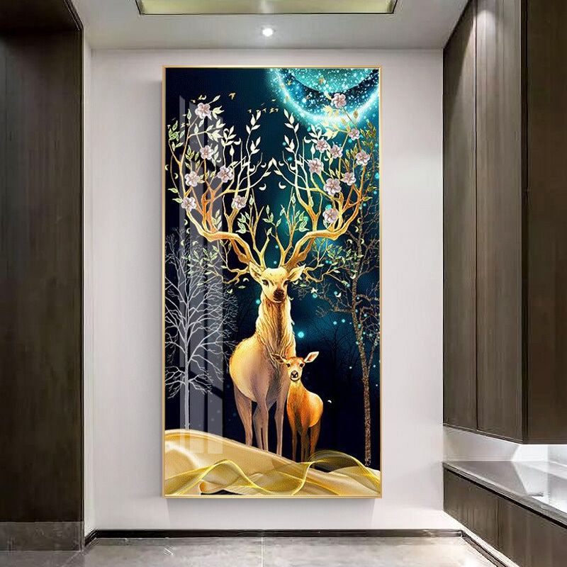 Deer Modern Crystal Glass Painting [ 24 x 48 Inches ]