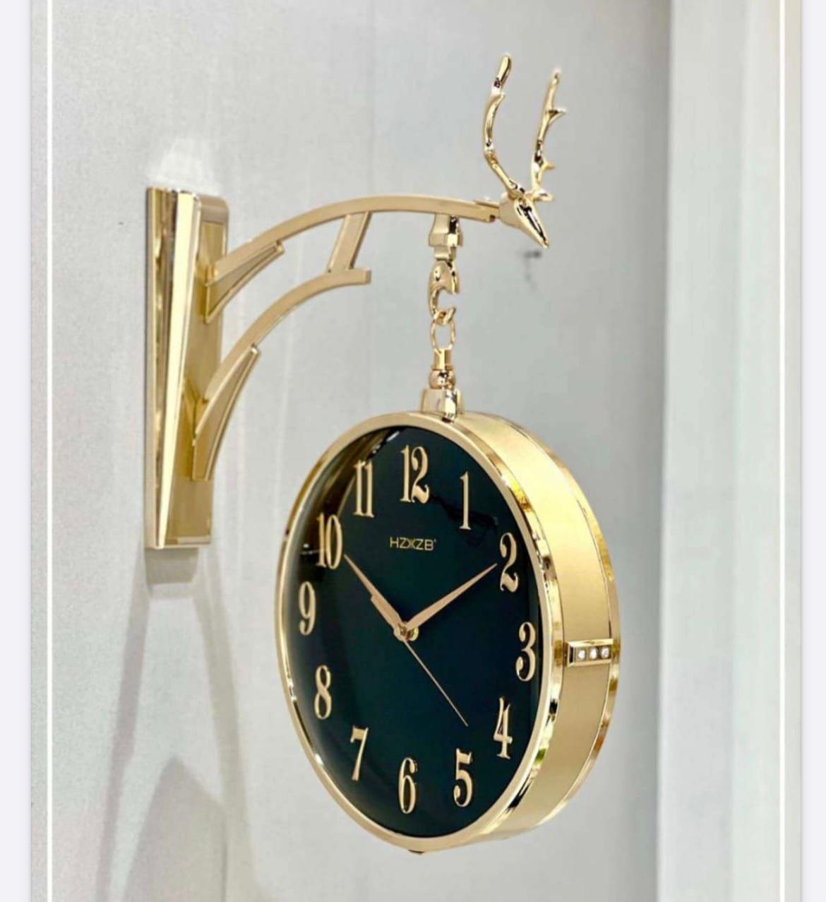Dual Dial Metal Hanging Wall Clock [ Gold & Black ]