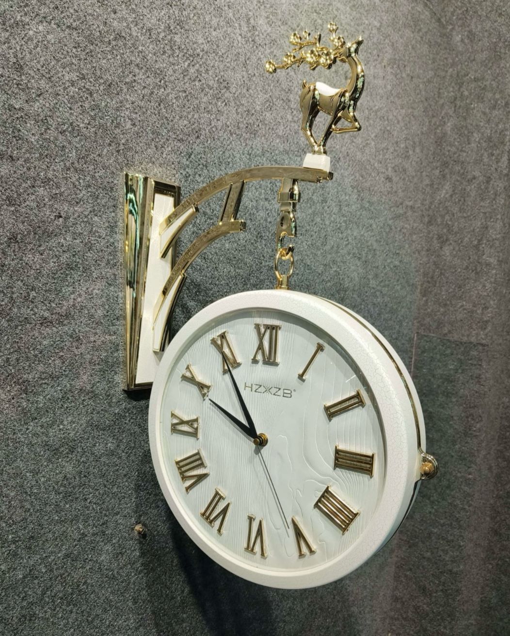 Dual Dial Metal Hanging Wall Clock [ Gold & White]