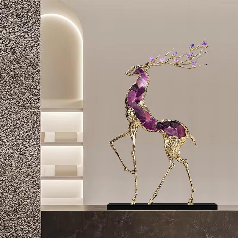 Gold Deer Table Showpiece With Purple Crystals [ Big ]