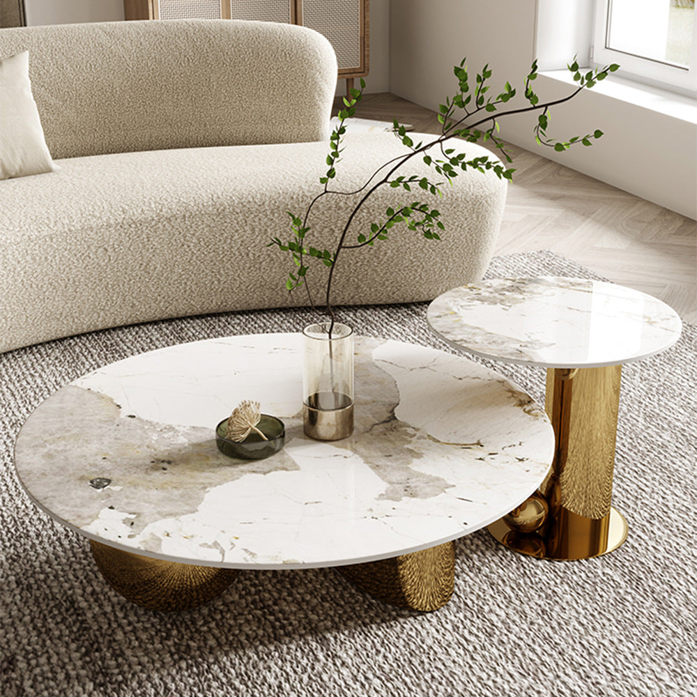 Gold PVD Coated Metal Base With Marble Top Nesting Centre Table