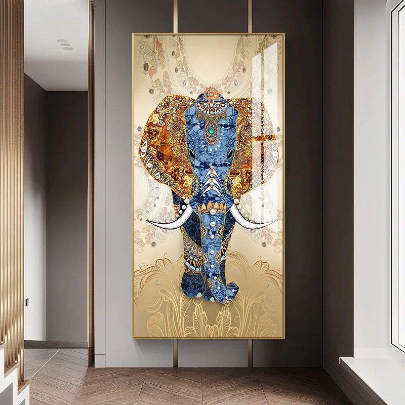 Measuring 24x48 inches, our crystal painting set is the perfect size to make a bold statement in any room. The golden frame adds a touch of glamour and complements the crystal and glass work beautifully.