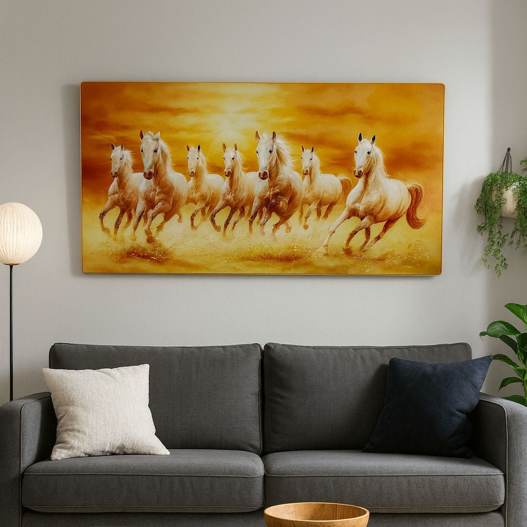 Seven Horses Crystal Glass Painting [ 48 x 24 Inch ] Style 1
