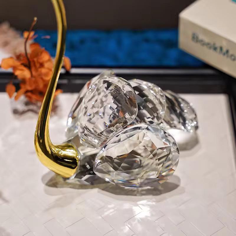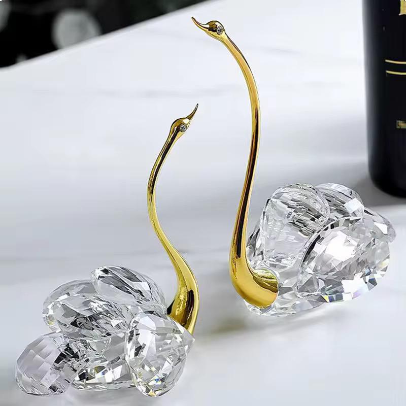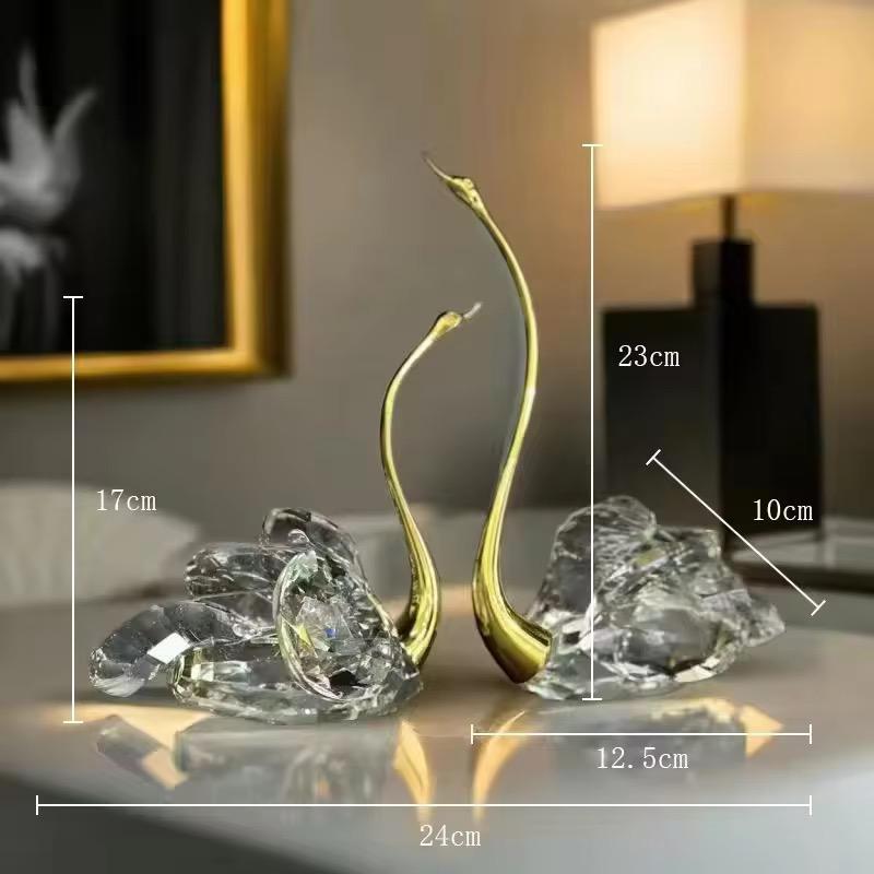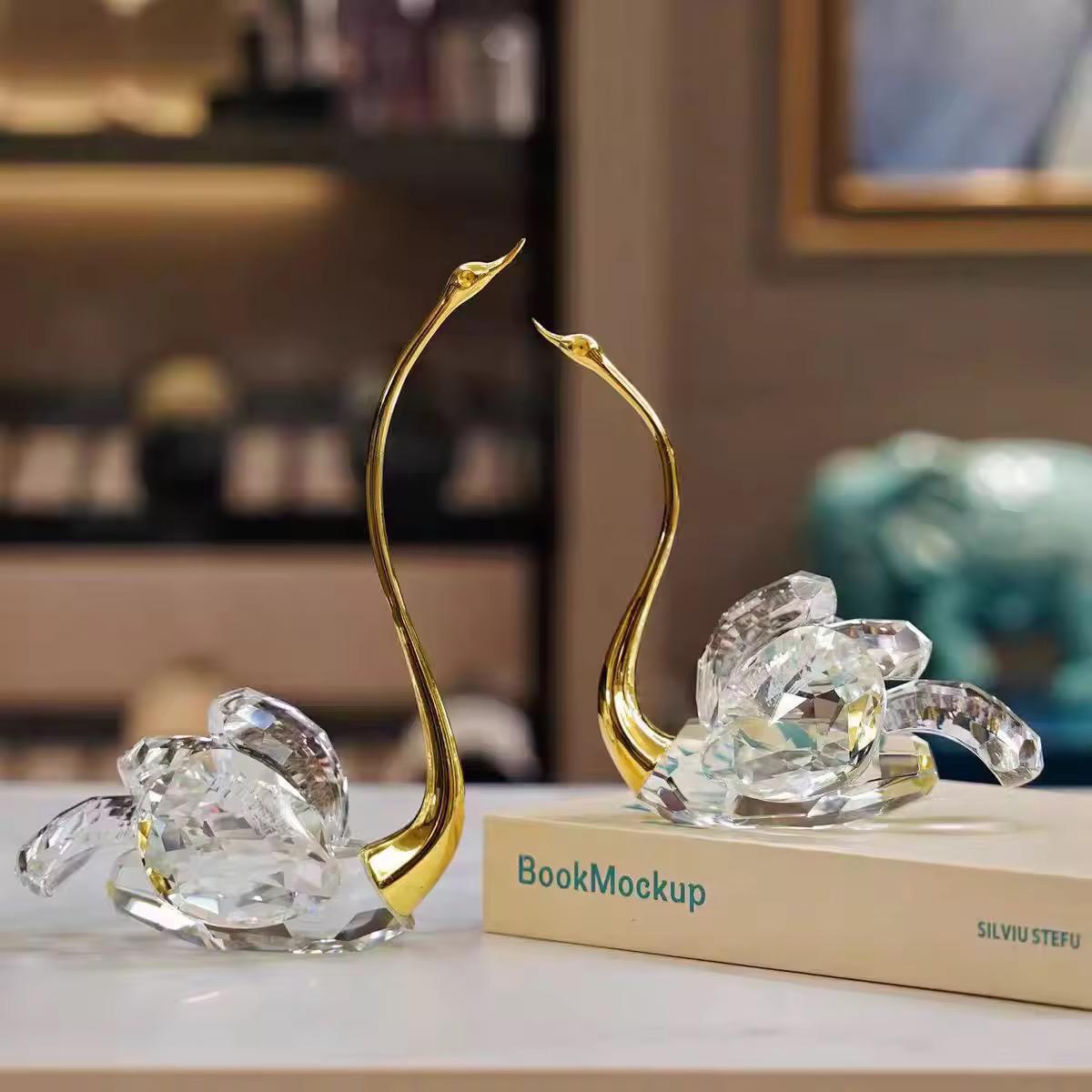 Gold Metal Swan With Crystals Table Showpiece [ Set of 2 ]